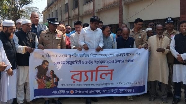 জাতির পিতা বঙ্গবন্ধু শেখ মুজিবুর রহমানের ১০৪তম জন্মবার্ষিকী উপলক্ষে সুনামগঞ্জের জগন্নাথপুর উপজেলা প্রশাসন ও উপজেলা আওয়ামী লীগের উদ্যোগে বঙ্গবন্ধুর প্রতিকৃতিতে শ্রদ্ধা নিবেদন ও আলোচনা সভা অনুষ্ঠিত হয়।