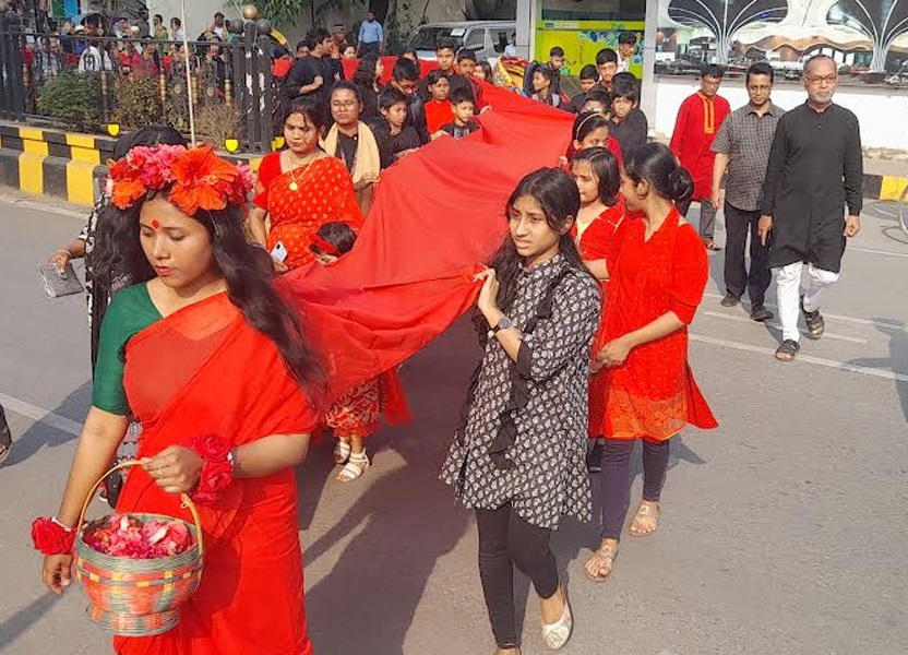 লালযাত্রা শেষে বুদ্ধিজীবী স্মৃতিসৌধের সামনে নাট্যকার ও নাট্য নির্দেশক হুমায়ুন কবির জুয়েলের ভাবনা ও পরিকল্পনায় পাঠশালা এবং সুবর্ণযাত্রার সদস্যরা ‘কালরাত্রি’ নাটক পরিবেশন করেন।