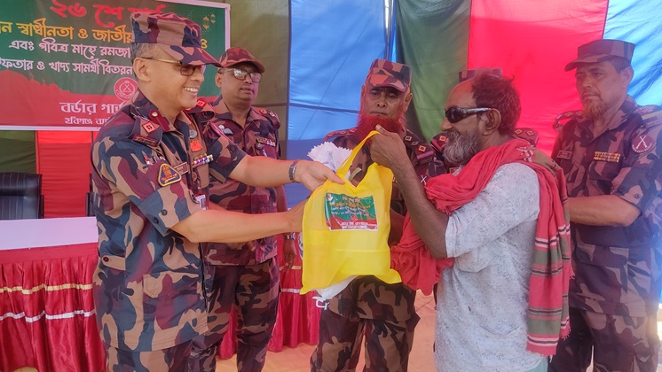 মহান স্বাধীনতা ও জাতীয় দিবস এবং পবিত্র মাহে রমজান উপলক্ষে বর্ডার গার্ড বাংলাদেশ (বিজিবি) হবিগঞ্জ ৫৫ ব্যাটালিয়নের উদ্যোগে চৌমুহনী ও বহরা ইউনিয়নের ২০০ জন অসহায় গরীব মানুষের মাঝে ইফতার ও খাদ্য সামগ্রী বিতরণ করা হয়েছে।