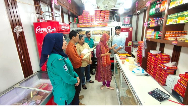 অভিযানে বিভিন্ন দোকানে পচা খাবার বিক্রি ও মূল্য তালিকা প্রদর্শন না করায় বিভিন্ন দোকান মালিককে জরিমানা করা হয়।
