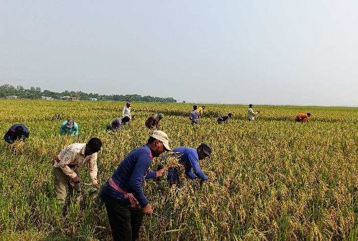 সোমবার সিলেটের গোয়াইনঘাট উপজেলার ফতেহপুর এলাকার হাওরে গিয়ে দেখা যায়, ধান কাটায় ব্যস্ত কৃষকরা। একদল ধান কেটে মাঠে জড়ো করছেন। আরেকদল কৃষক কাটা ধান কাধে করে বাড়ি নিয়ে যাচ্ছেন। আবার হাওরের পাশেই খোলা মাঠে ধান বাছাই ও শুকানোর কাজ করছেন কৃষানীরা।