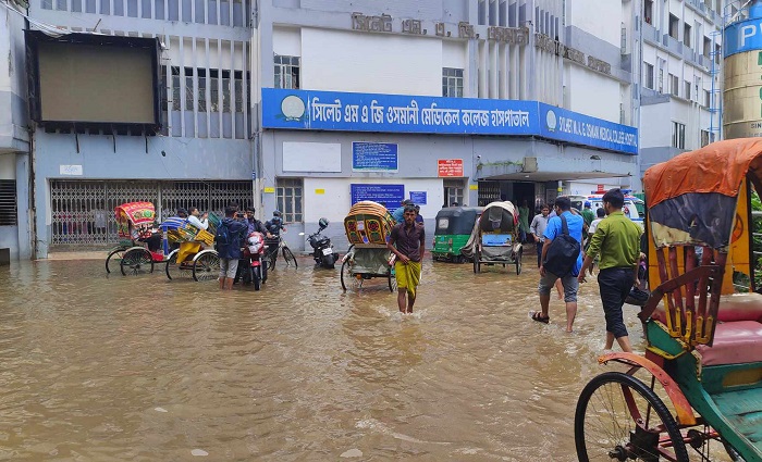 এদিকে, পানি ঢুকে পড়ে ওসমানী মেডিকেল কলেজেরও নীচতলায়। ফলে কলেজের সোমবারের সব পরীক্ষা ও ক্লাস স্থগিত করা হয়েছে।