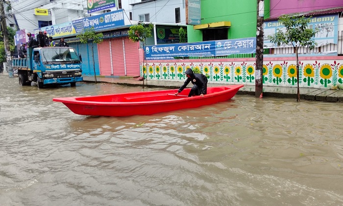 রোববার রাত থেকে শুরু হওয়া ভারি বৃষ্টি সিলেট নগরের প্রায় ২৮ টি ওয়ার্ড প্লাবিত হয়েছে। এতে পানিবন্দি হয়ে পড়েছেন লাখো মানুষঅ