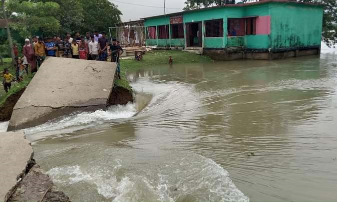 সোমবার দুপুরে উপজেলার দক্ষিণ বড়দল ইউনিয়নের গুরুত্বপূর্ণ এই সড়কটি ভেঙে যায়।