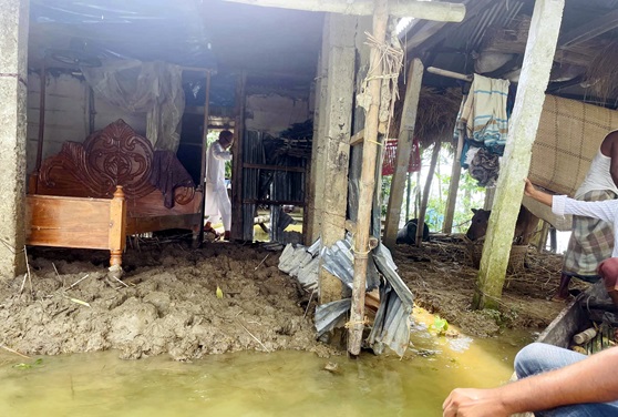 দরবস্ত ইউনিয়নের পশ্চিম দীঘিরপার দিনমজুর ফয়সাল আহমদের ঘর ভেঙে পড়েছে। তিনি আক্ষেপ করে বলেন, তিনদিন ঘরের ভেতরে পানি ছিল। পানির মধ্যেই পরিবার নিয়েছিলাম। এই কষ্ট সহ্য করেছি- ঘরটা রক্ষা করার জন্য। কিন্তু পানি নামার পর ঘরের বেড়াও ভেঙে পড়েছে।