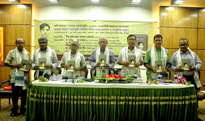 আবদুল গফ্ফার দত্তচৌধুরী স্মৃতি পর্ষদ সিলেটের আয়োজনে বিকাল ৫ টায় কবির নির্বাচিত কবিতা গ্রন্থের প্রকাশনার মোড়ক উন্মোচন ও আলোচনা সভা অনুষ্ঠিত হয়। এতে প্রধান অতিথি হিসেবে উপস্থিত ছিলেন বাংলাদেশ সুপ্রিম কোর্টের জ্যেষ্ঠ আইনজীবী, বীর মুক্তিযোদ্ধা তবারক হোসেইন।