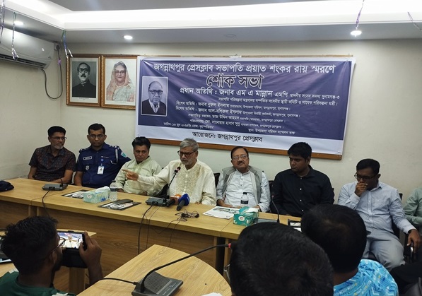 জগন্নাথপুর উপজেলা পরিষদ সম্মেলন কক্ষে শংকর রায় স্মরণে আয়োজিত শোক সভায় প্রধান অতিথি ছিলেন সুনামগঞ্জ -৩ আসনের সংসদ সদস্য ও সাবেক পরিকল্পনামন্ত্রী এম এ মান্নান।