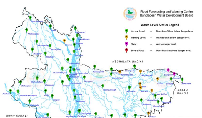 ভারতীয় আবহাওয়া অধিদপ্তর পূর্বাভাস জারি করেছে, আগামী ৫ দিনে মেঘালয় রাজ্যের খাসি পর্বত এলাকার উপরে রেকর্ড পরিমানে ভারী বৃষ্টির আশংকার কথা। বিভিন্ন আবহাওয়া পূর্বাভাস মডেল অনুসারে আগামী ৫ দিনে মেঘালয় রাজ্যের উপরে ১০০০ থেকে ২০০০ মিলিমিটার পর্যন্ত বৃষ্টির আশংকার কথা। ফলে সিলেট বিভাগের জেলাগুলোয় বড় ধরনের বন্যার আশংকা করা হচ্ছে।