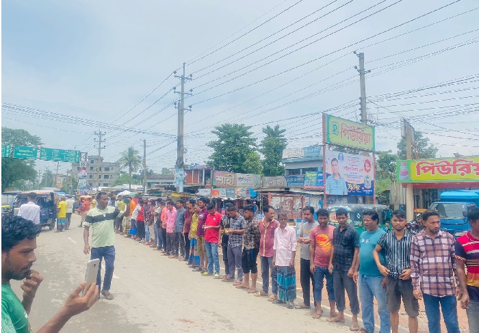 সোমবার জুড়ী উপজেলা শ্রমিক পরিবহনের চালকদের উদ্যোগে এম এ মুমিত আসুক চত্বরে এ মানববন্ধন অনুষ্ঠিত হয়।