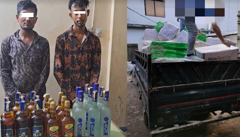 এদিকে, বুধবার রাতে চোরাই চিনির লাইন থেকে এয়ারপোর্ট থানা-পুলিশ পৃথক আরেক অভিযানে ২১ বোতল বিদেশি মদসহ দুজনকে গ্রেপ্তার করেছে। সংবাদ বিজ্ঞপ্তিতে বলা হয়, এয়ারপোর্ট থানাধীন বড়শালা এলাকার ফরিদাবাদ আবাসিক এলাকার প্রবেশমুখে কোম্পানীগঞ্জ থেকে সিলেটগামী সড়কে চেকপোস্ট বসিয়ে তল্লাশিকালে মাজাহারুল ইসলাম (৩০) ও শাহীন ইসলাম আল আমিন (২২) নামক দুই যুবককে আটক করা হয়।