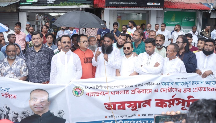 সিলেট সিটি কর্পোরেশনের ২০ নং ওয়ার্ড কাউন্সিলর আজাদুর রহমান আজাদের বাসভবনে হাসমলা ও ভাঙচুরের ঘটনায় অবস্থান কর্মসূচি ও শান্তি সমাবেশ করেছেন সিসিক সাধারণ ও সংরক্ষিত কাউন্সিলর ও কর্মকর্তাগণ। সোমবার (০১ জুলাই) নগরীর টিলাগড় পয়েন্টে এ কর্মসূচি পালন করা হয়।