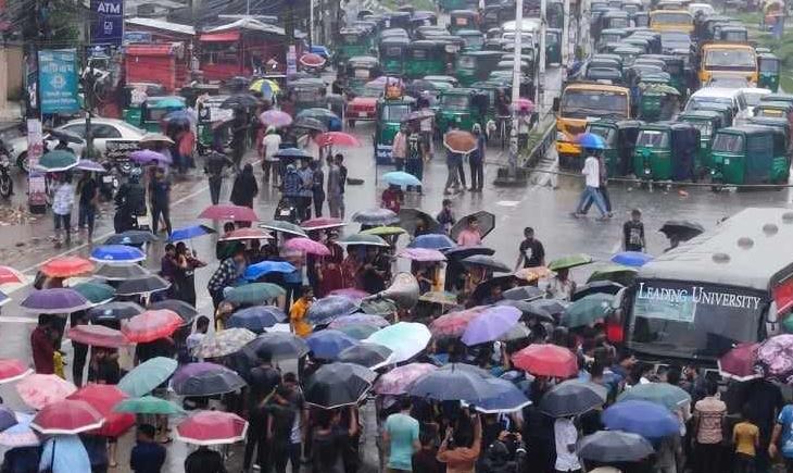 এ সময় রাস্তায় দুইপাশে দীর্ঘ যানজট সৃষ্টি হয়। বৃষ্টির মাঝে দুর্ভোগে পড়েন হাজারো মানুষ।