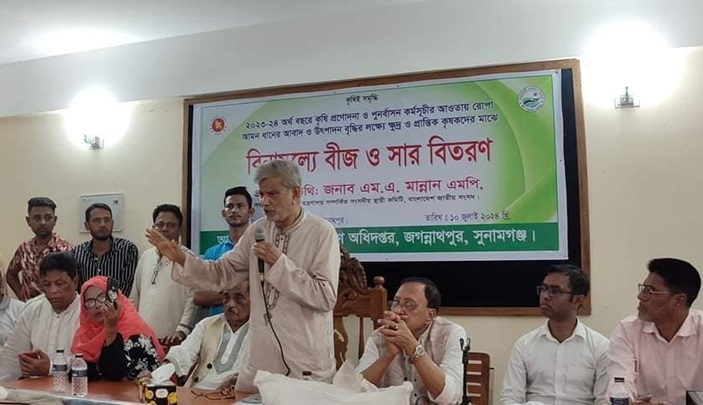 তিনি বুধবার (১০ জুলাই) দুপুরে সুনামগঞ্জের জগন্নাথপুর উপজেলা কৃষি সম্প্রসারণ অধিদপ্তরের উদ্যাগে কৃষি কার্যালয় মিলনায়তনে কৃষকদের মধ্যে বিনামূল্যে সার, বীজ ও কৃষি যন্ত্র বিতরণের উদ্বোধনী অনুষ্ঠানে প্রধান অতিথির বক্তব্যে এসব কথা বলেন।