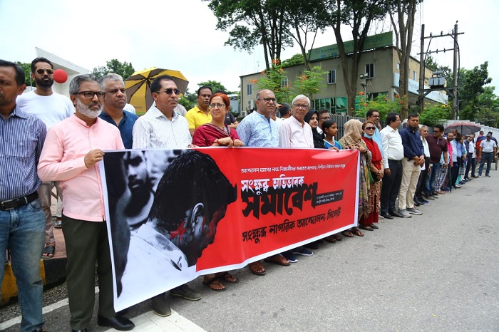 আন্দোলন দমনের নামে শিক্ষার্থীদের নির্বিচারে হত্যা, অব্যাহত ধরপাকড় ও নিপীড়ন-নির্যাতনে অভিভাবক ও নাগরিক হিসাবে আমরা সংক্ষুব্ধ। আলোচনা হোক আর অনুশোচনার সিদ্ধান্ত হোক- অবিলম্বে বৈষম্য বিরোধী ছাত্র আন্দোলনের যৌক্তিক দাবি মেনে নিতে হবে। শিক্ষার্থীদের সব যৌক্তিক দাবির সঙ্গে সংহতি প্রকাশ করে সিলেট কেন্দ্রীয় শহীদ মিনারে বেলা ১১টায় আয়োজন করা হয় সংক্ষুব্ধ নাগরিক সমাবেশ। সামাজিক যোগাযোগ মাধ্যমে আহ্ববান করা এই অভিভাবক সমাবেশে শতাধিক অভিভাবক ও নাগরিক অংশগ্রহণ করেন।