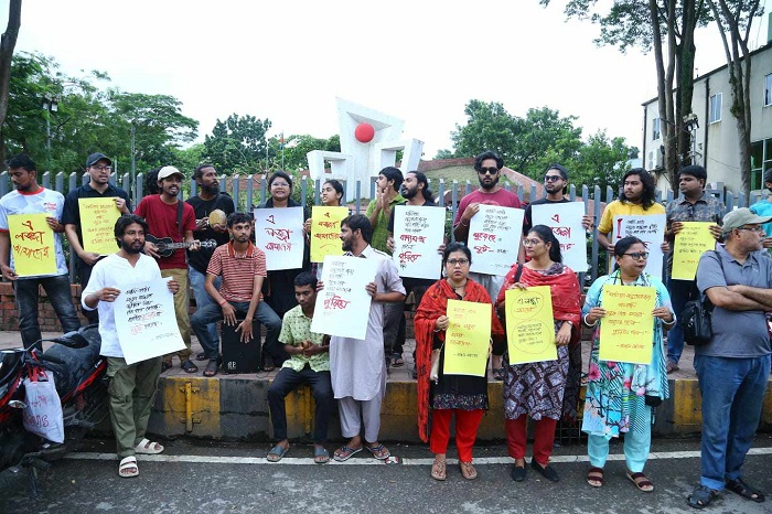 এই প্রতিবাদী আয়োজনের স্বমন্নয়ক সংস্কৃতি কর্মী ও সাংবাদিক নয়ন সরকার বলেন,, আমরা চাই এই দেশে সকল জাতি ধর্মের মানুষ সমান অধিকার নিয়ে বসবাস করবে। এই গণঅভ্যুত্থানের পর জলের গানের রাহুল আনন্দসহ অসংখ্য সংখ্যালঘুদের উপর হামলা-নির্যাতন বন্ধ, অসাম্প্রদায়িক বাংলাদেশ গড়া, সংস্কৃতিচর্চার পরিবেশ তৈরি করা, মৌলবাদের আগ্রাসন রুখে দাড়াতেই ছিলো আমাদের আজকের প্রতিবাদী আয়োজনের মূল উদ্দেশ্য।