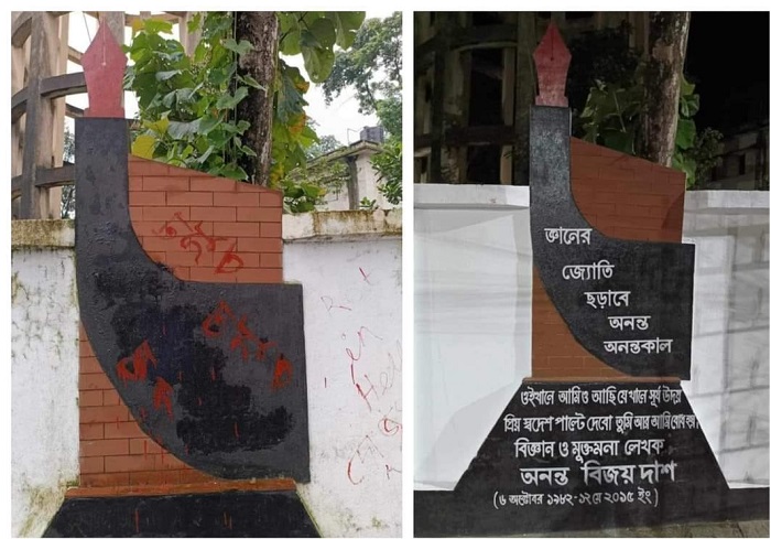 বিজ্ঞানলেখক ও ব্লগার অনন্ত বিজয় দাশ স্মরণে তার হত্যার ঘটনাস্থলে অস্থায়ীভাবে নির্মিত দেয়াল-স্মৃতিস্তম্ভের লেখা মুছে ফেলা হয়েছে। ‘জ্ঞানের জ্যোতি ছড়াবে অনন্ত, অনন্তকাল’ শীর্ষক এ স্মৃতিলিখন সম্প্রতি কে বা কারা মুছে ফেলেছে। গতকাল রোববার সন্ধ্যার পর থেকে বিষয়টি জানাজানি হয়।