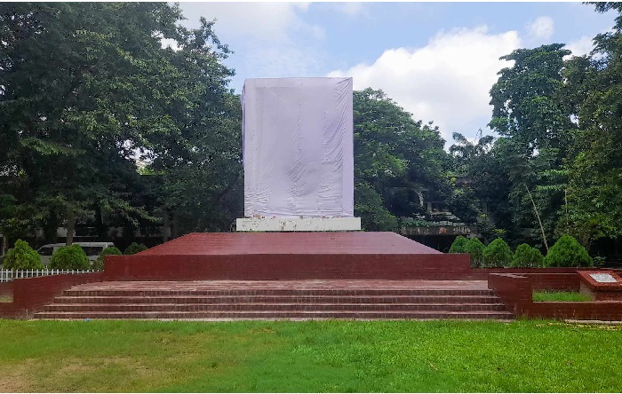 সিলেট জেলা প্রশাসকের কার্যালয় প্রাঙ্গণে নির্মিত বঙ্গবন্ধু শেখ মুজিবুর রহমানের বিশাল প্রতিকৃতি এখন সাদা কাপড়ে ঢাকা। শোকাবহ ১৫ আগস্টে আজ (বৃহস্পতিবার) কেউ শোক জানাতেও যায়নি এখানেও। যদিও নির্মাণের পর থেকে প্রতিবছর ১৫ আগস্টে এই মুর্যালে শ্রদ্ধা নিবেদনের ভিড় লেগে যেতো।
