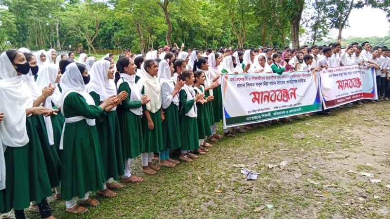 রোববার দুপুর ১২টায় বিদ্যালয় প্রাঙ্গণে এ মানববন্ধন অনুষ্ঠিত হয়।