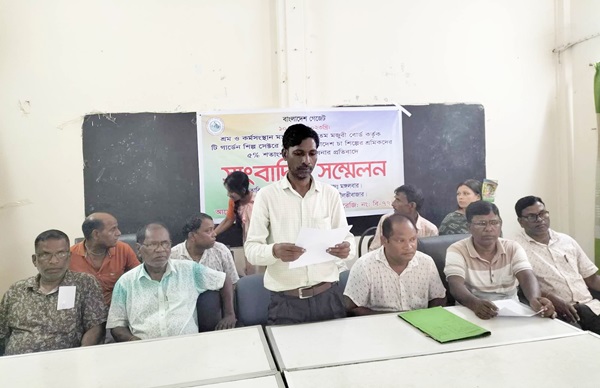 বাংলাদেশ শ্রম ও কর্মসংস্থান মন্ত্রণালয় এর নিম্নতম মজুরী শাখা কর্তৃক প্রকাশিত গেজেটে চা বাগান শিল্প সেক্টরে চা শিল্পের শ্রমিকদের শতকরা ৫ শতাংশ মজুরী প্রত্যাখ্যান করে সংবাদ সম্মেলন করেছে বাংলাদেশ চা শ্রমিক ইউনিয়ন।