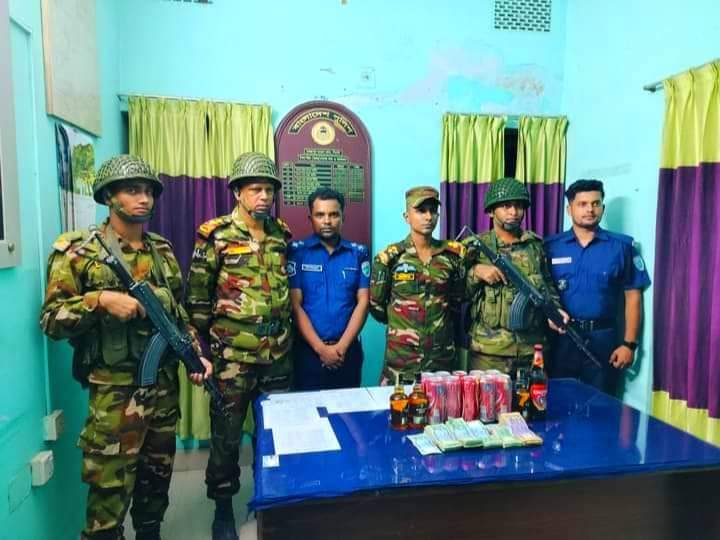 সিলেটের জৈন্তাপুরে অভিযান চালিয়ে পরিত্যক্ত অবস্থায় নগদ টাকাসহ মদ উদ্ধার করেছে যৌথ বাহিনী ।