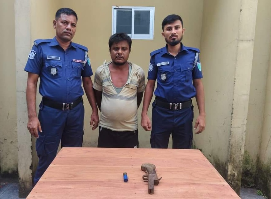 রোববার রাত সাড়ে ৩টার দিকে উপজেলার ভাদেশ্বর ইউনিয়নের হাওরতলা গ্রাম থেকে গ্রেপ্তার করা হয়। এসময় তার কাছ থেকে ব্যারেল বিহীন ২ ট্রিগার বিশিষ্ট একটি বন্দুক ও ১টি শর্টগানের লীডবল কার্তুজ উদ্ধার করা হয়।
