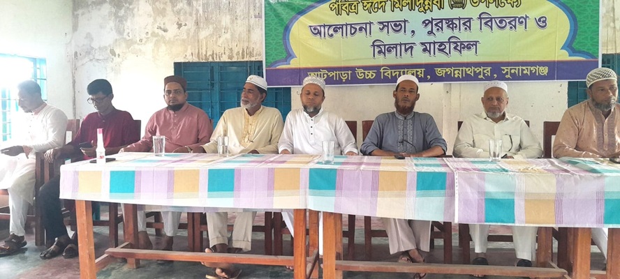 পবিত্র ঈদে মিলাদুন্নবী (সা.) উদযাপন উপলক্ষে সুনামগঞ্জের জগন্নাথপুরের আটপাড়া উচ্চ বিদ্যালয়ের আয়োজনে আলোচনা সভা, শিন্নী বিতরণী ও মিলাদ মাহফিল অনুষ্ঠিত হয়েছে।