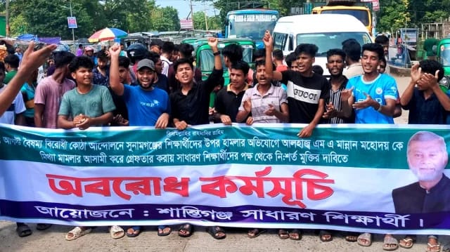সাবেক পরিকল্পনামন্ত্রী এম এ মান্নানকে গ্রেপ্তারের প্রতিবাদে শান্তিগঞ্জে আঞ্চলিক সড়ক অবরোধ করে বিক্ষোভ করেছেন শিক্ষার্থীরা।
