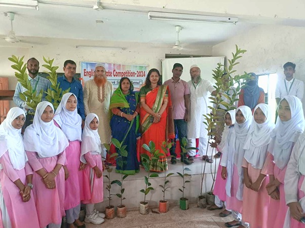 পরে ইংরেজি বিতর্ক প্রতিযোগিতায় অংশগ্রহণকারী শিক্ষার্থীদের মাঝে মূল্যবান ফলদ গাছের চারা পুরস্কার হিসেবে বিতরণ করা হয়েছে।