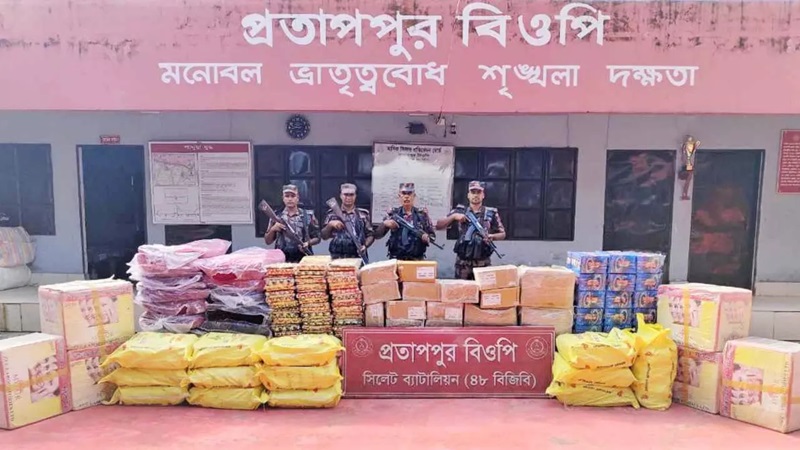 বুধবার (২ অক্টোবর) গোয়াইনঘাট উপজেলার সীমান্তবর্তী সোনাটিলা ও প্রতাপপুরসহ বিভিন্ন স্থানে অভিযান চালিয়ে এসব পণ্য জব্দ করা হয়।