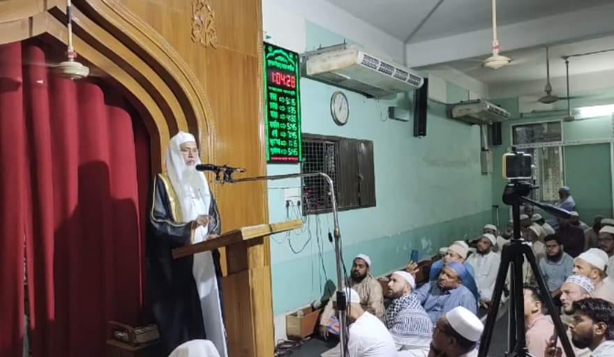 নামাজের আগে মসজিদের সেক্রেটারি সিলেটের সিনিয়র সাংবাদিক মুকতাবিস উন নূর ঘোষণা দেন শায়খ আব্দুল কাইয়ুম জুমার নামাজের খুৎবা প্রদান করবেন ও জামাত পড়াবেন। ওই ইমাম মিম্বরে উঠে আরবিতে প্রথম খুৎবা দিলেও একপর্যায়ে বাংলায় বক্তব্য দিতে শুরু করেন। তবে দ্বিতীয় খুৎবা তিনি আরবিতেই দেন।