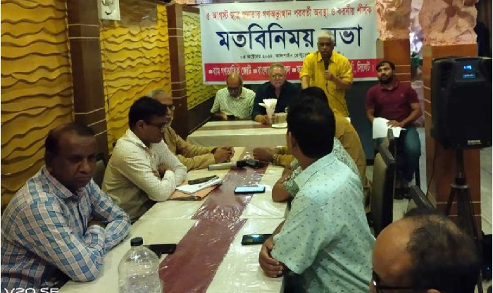 মতবিনিময় সভায় বক্তারা বলেন, গণ অভ্যুত্থানের আকাঙ্ক্ষা দেশে গণতান্ত্রিক -বৈষম্যহীন সমাজ নির্মাণে বাম প্রগতিশীল শক্তির নেতৃত্বে বিভিন্ন শ্রেণি-পেশার মানুষের ঐক্যবদ্ধ সংগ্রামের বিকল্প নেই।
