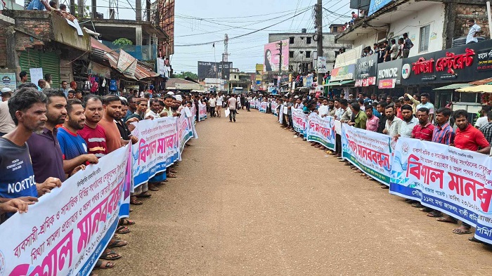 মানব বন্ধন চলাকালে সড়ক অবরোধ করে রাখে বিক্ষুব্ধ শ্রমিকরা। এ সময় সড়কের দুই পাশে কয়েক শতাধিক যানবাহন আটকা পড়ে।