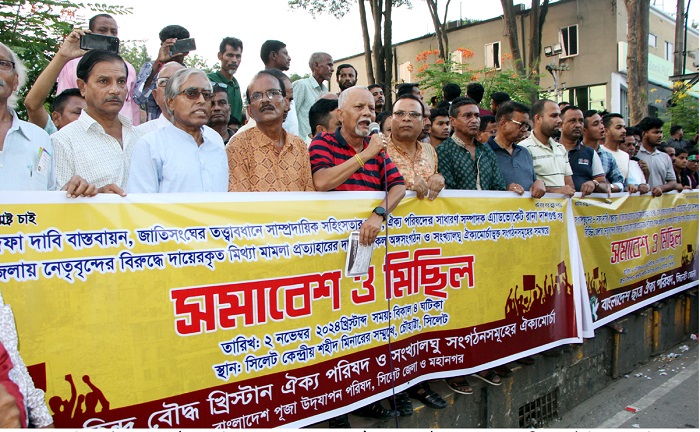বাংলাদেশ হিন্দু বৌদ্ধ খৃষ্টান ঐক্য পরিষদ ও সংখ্যালঘু সংগঠনসমূহের ঐক্য মোরচা কেন্দ্রীয় কর্মসুচির অংশ হিসেবে সিলেট জেলা ও মহানগর শাখা আয়োজনে সিলেট কেন্দ্রীয় শহীদ মিনারে সামনে প্রতিবাদ সভা ও মিছিল অনুষ্ঠিত হয়েছে।