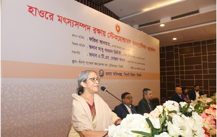 ওয়ার্কশপে উপদেষ্টা ফরিদা আখতার বলেন, হাওরে মাছের গতিপথে অপরিকল্পিত বাঁধ ও রাস্তা নির্মাণের ফলে মাছের বিচরণ ক্ষেত্রে বাধা সৃষ্টি করা হয়েছে। নিষিদ্ধ জাল দিয়ে মাছ ধরে দেশীয় প্রজাতিগুলোকে ধ্বংস করা হয়েছে।