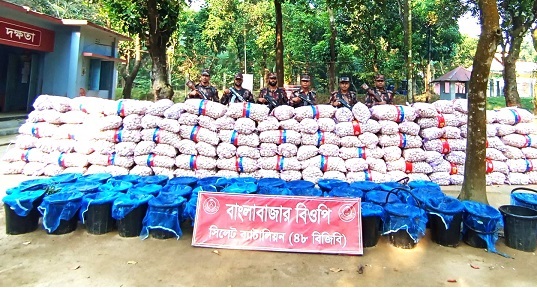 সংবাদ বিজ্ঞপ্তিতে উল্লেখ করা হয়- শনিবার (২৩ নভেম্বর) গোপন সংবাদের ভিত্তিতে সিলেট ব্যাটালিয়ন (৪৮ বিজিবি) এর দায়িত্বাধীন সিলেট এবং সুনামগঞ্জ জেলার সীমান্তবর্তী এলাকায় শ্রীপুর, তামাবিল, সংগ্রাম, সোনারহাট, প্রতাপপুর, পান্থুমাই, উৎমা, মিনাটিলা, কালাইরাগ, কালাসাদেক এবং বাংলাবাজার বিওপি কর্তৃক অভিযান পরিচালনা করে ভারতীয় নিভিয়া সফট ক্রিম, গার্নিয়ার ম্যান ফেসওয়াশ, নিভিয়া বডি লোশন, মাই ফেয়ার ক্রিম, ডিইক্লো-এম ট্যাবলেট, শীতের কম্বল, চিনি, চকলেট, সাবান, গরু, ফেন্সিডিল, বাংলাদেশী রসুন, শিং মাছ এবং অবৈধভাবে পাথর উত্তোলনকারী নৌকাসহ অন্যান্য ভারতীয় পণ্য জব্দ করা হয়। যার আনুমানিক বাজারমূল্য ১ কোটি ৬৫ লক্ষ ৯ হাজার ৫০০ টাকা।
