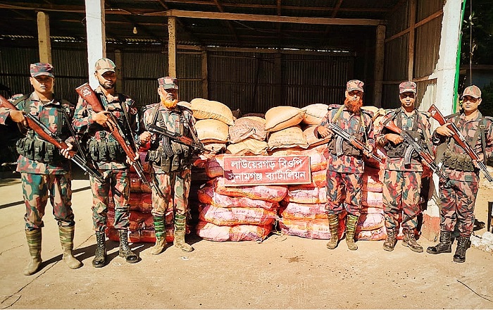 সুনামগঞ্জের তাহিরপুর উপজেলা সীমান্ত থেকে ১০ হাজার ২৫০ কেজি চিনি ও ৫৭৫ কেজি ভারতীয় আনার জব্দ করেছে বিজিবি।