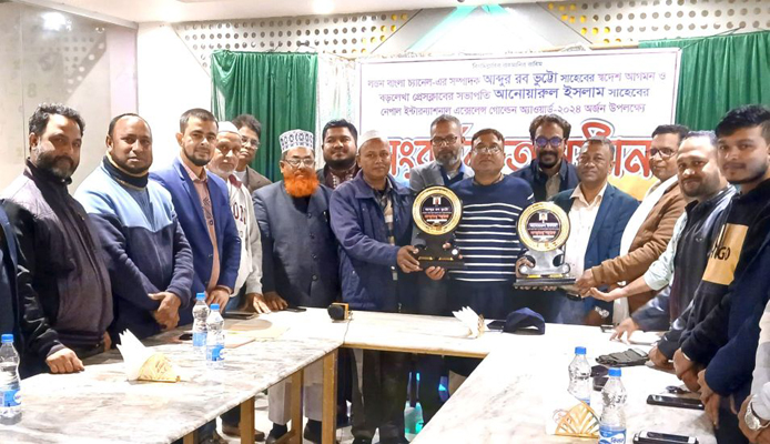 পরে অতিথিবৃন্দ প্রেসক্লাবের পক্ষ থেকে সংবর্ধিত দুই গুণি সাংবাদিককে সম্মাননা ক্রেস্ট প্রদান করেন।