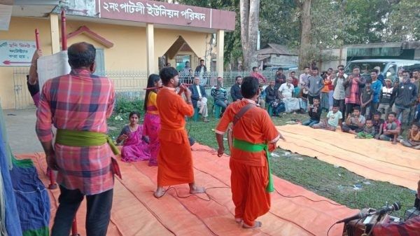 সুনামগঞ্জের জগন্নাথপুর উপজেলার পাটলী ইউনিয়নে ইউরোপীয় ইউনিয়ন ও ব্র্যাকের যৌথ অর্থায়নে ব্র্যাকের বাস্তবায়নাধীন ‘ইম্প্রোভড সাসটেইনেবল রিইন্টিগ্রেশন অব বাংলাদেশী রিটার্নি মাইগ্রেন্টস’ প্রত্যাশা- ২ প্রকল্পের অধীনে রূপান্তরের পরিবেশনায় এ পটগান অনুষ্ঠিত হয়েছে।