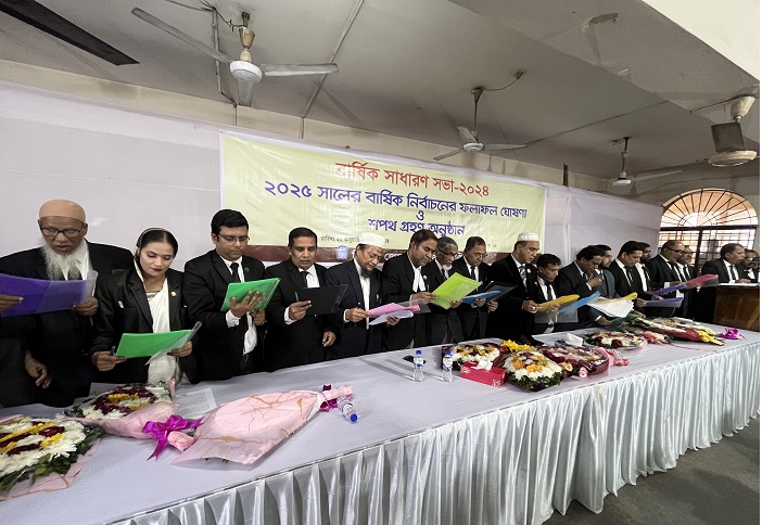 এদিকে সোমবার বেলা তিনটার দিকে সমিতির নবনির্বাচিত সভাপতি সরওয়ার আহমদ চৌধুরী আবদাল ও সাধারণ সম্পাদক মো. জোবায়ের বখতসহ কমিটির সবাই শপথ নিয়েছেন। এর আগে বেলা দেড়টার দিকে জেলা আইনজীবী সমিতির প্রধান নির্বাচন কমিশনার সৈয়দ মোহাম্মদ তারেক গণমাধ্যমে এক সংবাদ বিজ্ঞপ্তি পাঠান।
