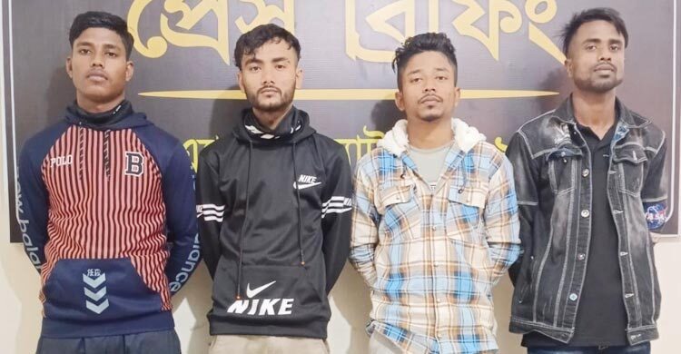 তারা হচ্ছেন, সুনামগঞ্জের ছাতক উপজেলার সিমছাপৈর আব্দুল কদ্দুছের ছেলে রুয়েল আহমেদ (২৬), একই উপজেলার কিরদা কাপন গ্রামের কিরণ মিয়ার ছেলে আলী হোসেন ওরফে আফজাল হোসেন (২২), শান্তিগঞ্জ উপজেলার পাগলা গ্রামের শাজলু মিয়ার ছেলে আজাদ মিয়া (২৩) ও বীরগাঁও গ্রামের লেবু মিয়ার ছেলে সোয়েব মিয়া (২৭)।