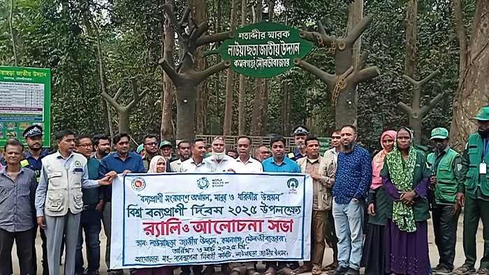 "বন্যপ্রাণী সংরক্ষণে অর্থায়ন, মানুষ ও ধরত্রীর উন্নয়ন" এই প্রতিপাদ্য নিয়ে মৌলভীবাজারে কমলগঞ্জে বিশ্ব বন্যপ্রাণী দিবস ২০২৫ পালিত হয়েছে।