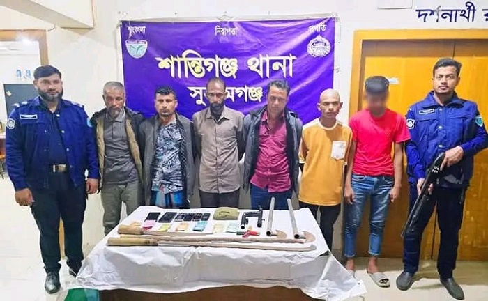 সুনামগঞ্জের শান্তিগঞ্জে পুলিশের বিশেষ অভিযানে ছয়জনকে গ্রেপ্তার করেছে পুলিশ। গ্রেপ্তারকৃতদের মধ্যে একজন আন্তঃজেলা ডাকাতদলের সর্দার ও বাকীরা ডাকাত বলে জানিয়েছে পুলিশ।