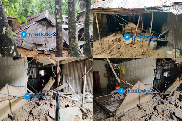 বড়লেখা উপজেলার দক্ষিণভাগ দক্ষিণ ইউনিয়নের ৯ নম্বর ওয়ার্ডে ক্ষতিগ্রস্ত কাঁচা ঘর। ছবি: সংগৃহীত ।