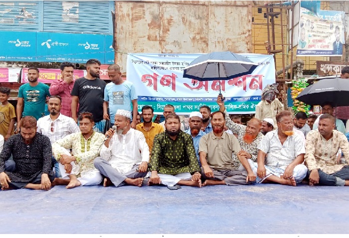 পাথর কোয়ারি সচলের দাবিতে সোমবার ধোপাগুলে গণঅনশন কর্মসূচী পালন করা হয়। ছবি সংগৃহীত