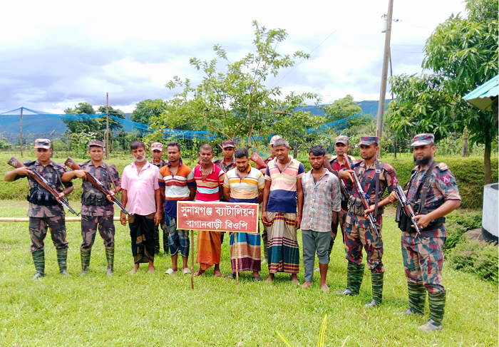 বুধবার দুপুরে বিজিবির সুনামগঞ্জ ২৮ ব্যাটালিয়নের দোয়ারাবাজারের বাগানবাড়ি বিওপির সদস্যরা বাগানবাড়ি সীমান্তের ইদুকোনা থেকে ৬ জনকে আটক করে।