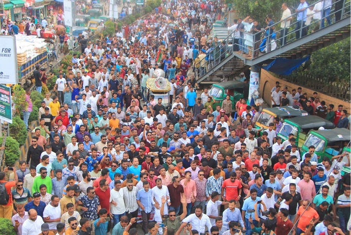 সরকারের নির্লিপ্ততায় সারাদেশে আইনশৃঙ্খলা পরিস্থিতির অবনতির প্রতিবাদে আয়োজিত মিছিলটি নগরীর রেজিস্ট্রারি মাঠ থেকে শুরু হয়ে প্রধান প্রধান সড়ক প্রদক্ষিণ করে চৌহাট্টা পয়েন্টে গিয়ে সমাপ্ত হয়।
