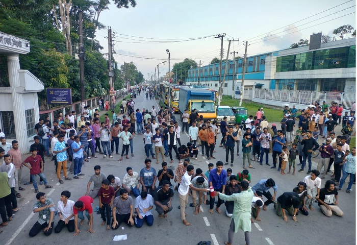 এসময় তারা শিক্ষা উপদেষ্টার পদত্যাগ দাবিতে শ্লোগান দিতে থাকে। এক পর্যায়ে শিক্ষার্থীরা বিকেল ৪টার দিকে সিলেট-জকিগঞ্জ সড়ক অবরোধ করে। ল