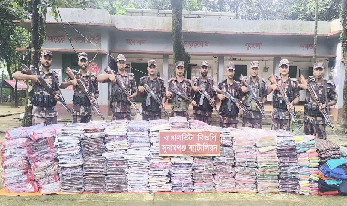 সুনামগঞ্জ সীমান্ত দিয়ে অবৈধভাবে আসা ভারতীয় কাপড়ের চালান জব্দ করেছে বিজিবি।