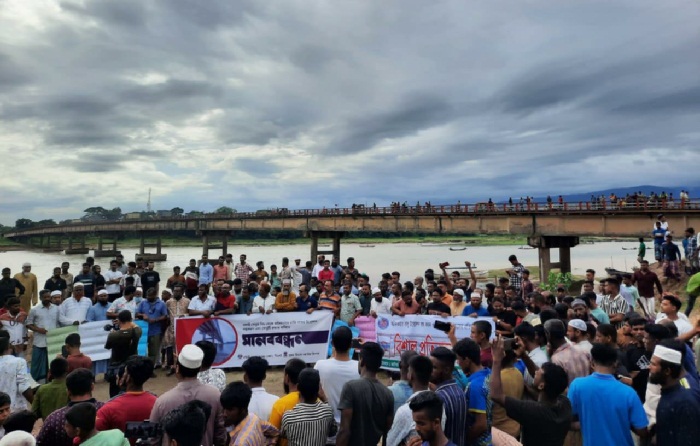 বালু খেকোদের হাত থেকে ধলাই সেতু রক্ষায় কোম্পনীগঞ্জে আজ বিশাল মানববন্ধন ও প্রতিবাদ সমাবেশ অনুষ্ঠিত হয়েছে।