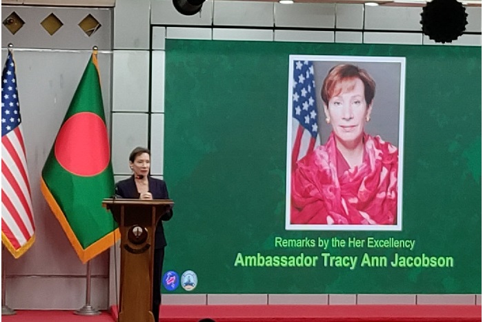 বাংলাদেশে নিযুক্ত মার্কিন যুক্তরাষ্ট্রের ভারপ্রাপ্ত রাষ্ট্রদূত ট্রেসি অ্যান জ্যাকবসন বলেছেন, আমাদের দুই মহান দেশের সম্পর্ক গড়ে উঠছে বাংলাদেশি থেকে আমেরিকান, এক একজন মানুষের মাধ্যমে—হাতে হাত ধরে, হৃদয়ে হৃদয় দিয়ে।